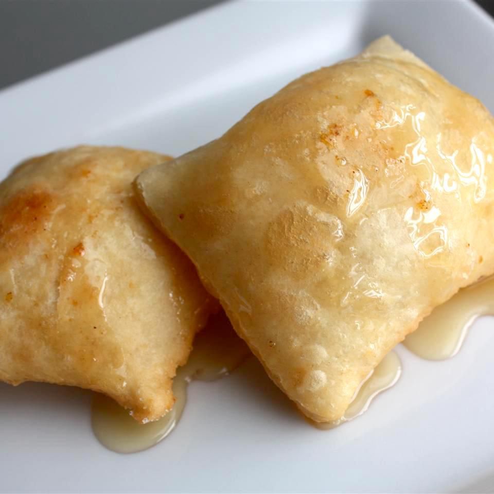 - Fry dough squares in the preheated oil until golden brown on both sides. Drain on paper towels and serve hot.