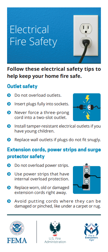 • Heating and Electrical Safety: Maintain heating equipment through annual professional inspections. Avoid overloading outlets, use appliances as intended, and replace frayed cords promptly.