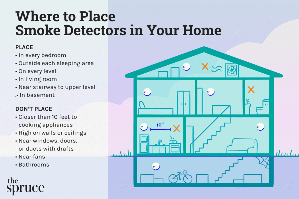 Working smoke alarms are critical, reducing the risk of death by approximately 50%. Install alarms on every level of the home, inside each bedroom, and outside sleeping areas. Interconnect alarms so that when one activates, all sound. Test them monthly, replace batteries annually (or as needed), and renew units every 10 years.