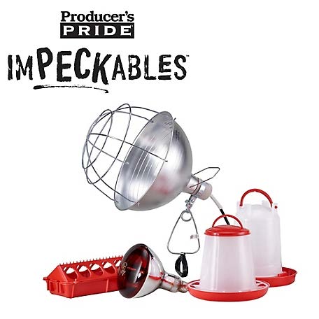 temperature at the bottom of the brooding area should be 95-100 degrees for the first two weeks and then reduced 5 degrees each week until chicks are a month old. Use a brooder lamp (we recommend a red bulb) clipped over one side of the brooding area so the chicks can choose whether to be under the light or not. If chicks are crowded together directly under the heat source, then they are cold. If they are around the edges of the brooding area, then they are too hot. Adjust the height of the lamp accordingly and give them enough room to move in and out of the light to regulate their body temperatures.