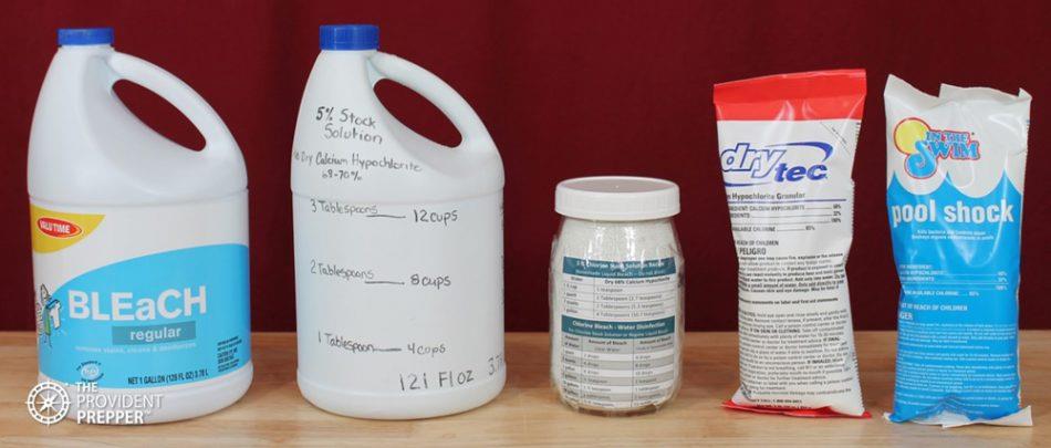 - Calcium hypochlorite is a powdered form of chlorine that has a 10-year shelf life. It is also known as pool shock. Be sure that you purchase calcium hypochlorite with that has 68 percent calcium hypochlorite with no other active ingredients. Go to Disinfecting Water Using Calcium Hypochlorite for clear instructions to use this valuable resource. In order to use calcium hypochlorite as a disinfectant, you must make a stock solution by mixing 1 teaspoon of the granules with 1 ½ cups of water. This 5% stock solution can be used at the same rate that you use household bleach for disinfection. To disinfect, sanitize and reduce odors use the following amounts of regular household bleach or calcium hypochlorite 5% stock solution. To simplify matters we will refer to them both as chlorine solution.