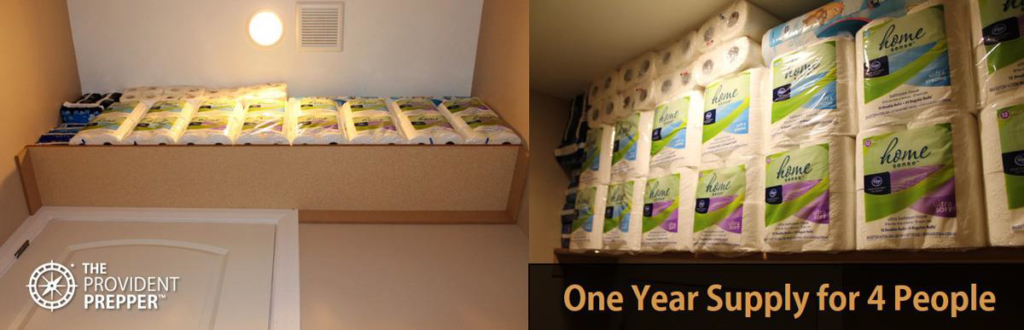Think about where you might be able to stash toilet paper. Can you put an extra shelf in the top of a closet? Top shelves in the garage? Under a bed?