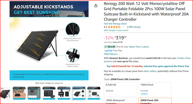Renogy 200 Watt 12 Volt Portable Solar Panel