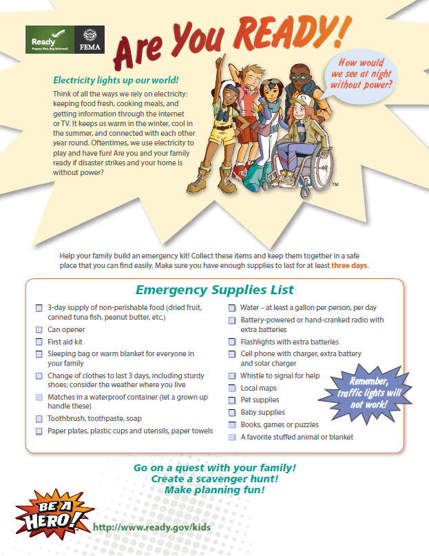 Preparedness is not just for the adults. Kids can also help families prepare for unexpected situations such as natural disasters, power outages, or other emergencies.