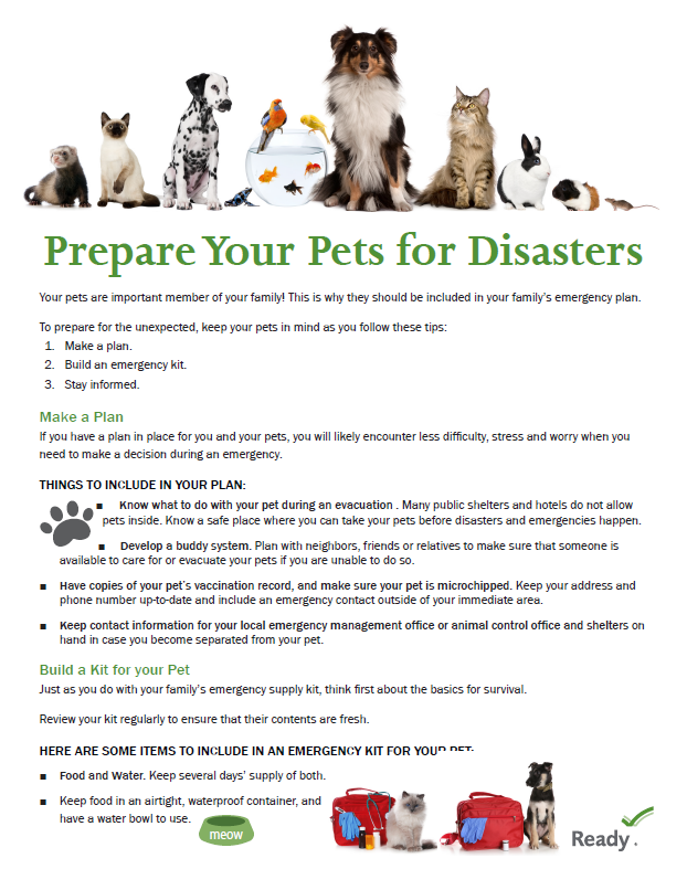 Your pets are important member of your family! This is why they should be included in your family’s emergency plan.