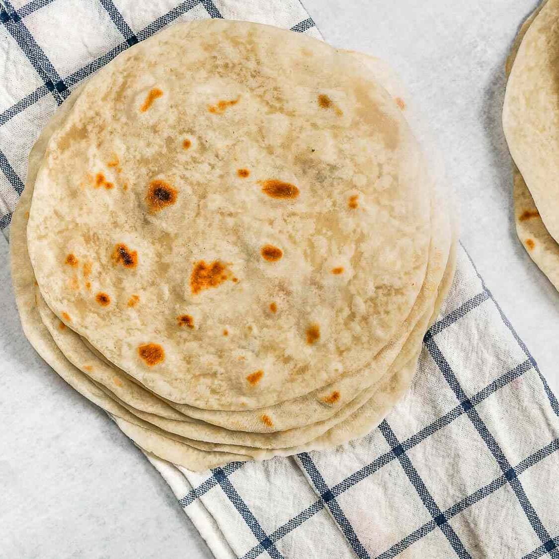 This is recipe works as a basic starting point to make fresh tortillas. It is simply flour, water, salt, baking powder and a fat of your choice. Butter is listed as fat in this recipe, but you can use lard, shortening, bacon grease or even a cooking oil of your choice.